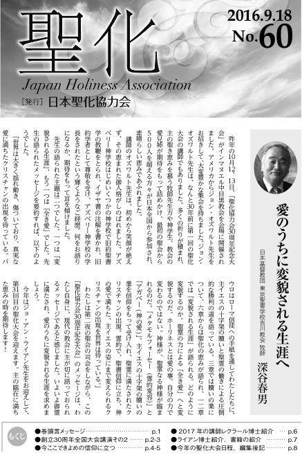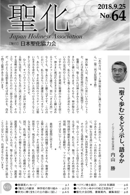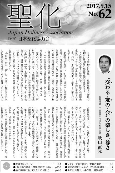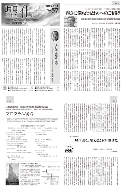 日本聖化交友会の発足当初から、機関誌として「聖化」は発行され、2014年には55号を発行するに至りました。